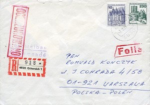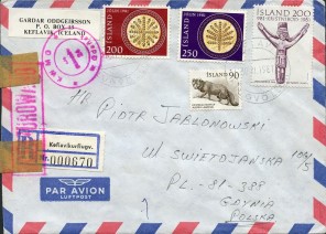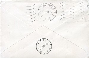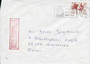Schon bevor die Nummernstempel eingeführt wurden, wurde eingehende Auslandskorrespondenz in Warschau zensiert. Diese zentrale Auslandszensur verfügte anscheinend aber nicht über die "Do Pakietow"-Stempel, wie sie in den Wojewodschaftskommandanturen verfügbar waren. Die schon vor der Verkündung des Kriegszustandes hergestellten Zusatzstempel "Ocenzurowno" waren aber auch dort verfügbar. Dies ist an Hand von frühen Auslandsbelegen, die nur den "Ocenzurowno"-Stempel tragen belegbar. Diese Briefe sind vermutlich schon vor der Verkündung der Zensur zurückgehalten worden. Brief mit einer ungwöhnlich langen Laufzeit. Am 6.August 1981 aus der Brasilien nach Tarnow mit "Nie Cenzurowano"-Stempel Type 1, rückseitig der Durchgangsstempel Wwa 3 vom 31.12.81. Die Farbe des "Nie Cenzurowano"-Stempels lässt auf eine Auslandszensur in Warschau schließen. Die seitlichen Verschlussstreifen sind keine Zensurmaßnahme, sondern wurden schon vor den Marken angebracht. Brief vom 7.12.81 aus der BRD nach Warschau mit "Ocenzurowano"-Stempel, rückseitig keine weiteren Stempel Brief vom 9.12.81 aus Schweden nach Zywiec mit "Ocenzurowno"-Stempel, rückseitig der Durchgangsstempel Wwa 3 vom 22.12.81 und Ankunftsstempel von Zywiec vom 24.12.82 Brief vom 9.12.81 aus Dänemark nach Wwa mit "Ocenzurowno"-Stempel, rückseitig der Durchgangsstempel Wwa 3 vom 19.12.81 und Ankunftsstempel von Wwa 22 vom 21.12.82 Andere Belege wurden anscheinend an die Zielorte weitergeleitet und dort zensiert. Brief vom 8.12.81 aus Schweden nach Gdynia mit "Do Pakietow"-Stempel (verm. 15 Gdynia) und "Ocenzurowno"-Stempel von Gdynia, rückseitig der Durchgangsstempel Wwa 3 Brief vom 30.11.81 aus Island nach Gdynia mit "Do Pakietow"-Stempel (24 Gdynia) und mit "Ocenzurowno"-Stempel von Gdynia, rückseitig der Durchgangsstempel Wwa 3 vom 15.12.81 Im weiteren wird zu analysieren sein, wie es zu Auslandspost mit "Do pakietow" Stempeln insbesondere von Gdansk kommt. Man nimmt an, dass hier die Post zensiert wurde, die nicht per Luftpost einging. |