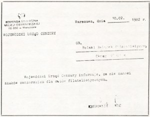 Wojewodschafts-Zensurabteilung informiert, dass sie keine Zensurstempel