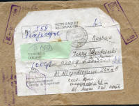 | Päckchen aus der UdSSR nach Warschau vom 23.6.1982 mit dem Zenzurstempel OCENZUROWANO Grundtyp